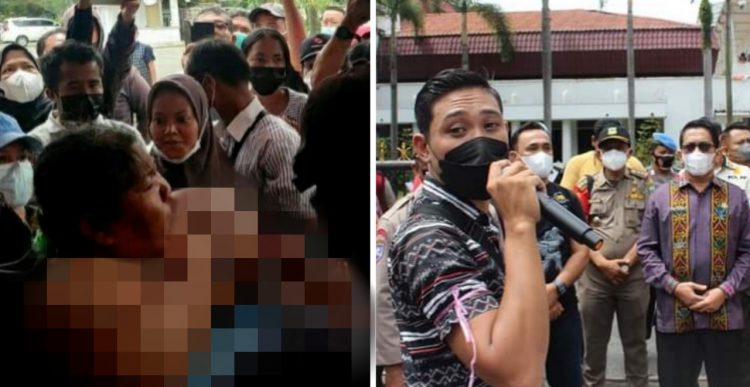 Sebelumnya aksi unjuk rasa yang semula berjalan dengan kondusif secara spontan heboh setelah seorang pedagang wanita melepaskan baju yang dipakainya hingga telanjang dada di depan anggota DPRD.
