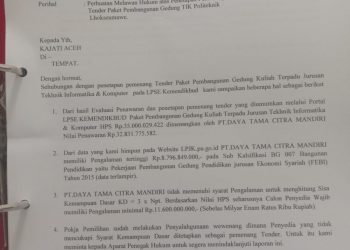 ACEH - MITRAPOLRI.COM Dari hasil Evaluasi Penawaran yang diumumkan melalui Portal LPSE Kementerian Pendidikan dan Kebudayaan RI Pembangunan Gedung Kuliah...