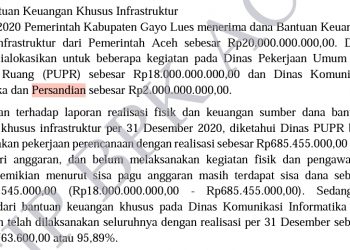 Banda Aceh, Aceh - Mitrapolri.com Berdasarkan Hasil Temuan BPK RI pada tahun 2020, Dinas PUPR Gayo Lues mendapatkan Dana bantuan...