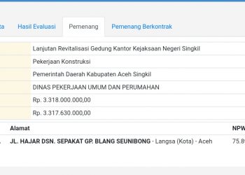 Aceh Singkil, Aceh - Mitrapolri.com Dua paket di Dinas PUPR Singkil untuk Kejaksaan Negri (Kejari) Singkil yaitu pembangunan gedung revitalisasi...