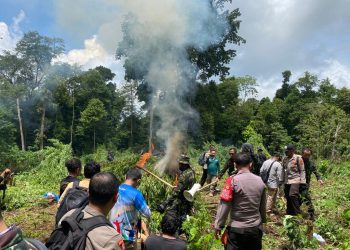 ACEH - MITRAPOLRI.COM Personel Batalyon A Pelopor Sat Brimob Polda Aceh bersama Badan Narkotika Nasional (BNN) RI memusnahkan 13.000 batang...