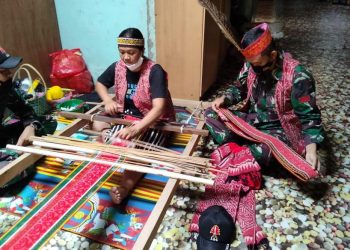 Kapuas Hulu, Kalbar - Mitrapolri.com Anggota Satgas Pamtas RI-Malaysia Yonif 144/JY lestarikan budaya tenun Sidan Dayak iban dusun Mentari desa...