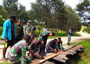 Nduga, Papua - Mitrapolri.com Prajurit TNI Pos Grimbun Satgas Yonif RK 114/ Satria Musara dipimpin Letda Inf Surya selaku Dantim...