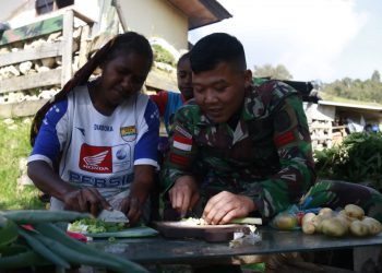 PAPUA - MITRAPOLRI.COM Papua Dalam pengabdiannya di daerah penugasan Pegunungan tengah Kabupaten Lanny Jaya Papua, Prajurit Satgas Yonif MR 412...