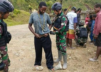 Nduga, Papua - Mitrapolri.com Prajurit TNI Satgas Yonif RK 114/ Satria Musara Pos Mbua dipimpin Lettu Kav Robert Wilson Sihombing...