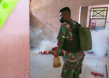 PAPUA - MITRAPOLRI.COM Untuk menghindari dan mencegah berkembangnya nyamuk yang dapat menyebabkan Malaria, Prajurit Satgas Yonif 126/KC Pos Yuruf melakukan...