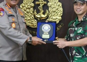 Palembang, Sumsel - Mitrapolri.com Danlanal Palembang Kolonel Laut (P) Widyo Sasongko menerima kunjungan kerja/Courtessy Call (CC) Dirpol Airud Polda Sumsel...