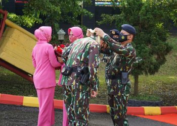 Palembang, Sumsel - Mitrapolri.com Kapolda Sumsel Irjen Pol Drs. Toni Harmanto, MH pimpin upacara serah terima Dhuaja Satbrimob Polda Sumsel...