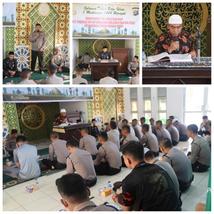Adapun Ceramah Agama oleh Ustadz Riko Pilihantoni, S.Ei, M.Ei menyampaikan “dengan pergantian tahun baru Islam ini semoga kita semua dapat mengintropeksi diri kita dan dapat menjalankan tugas dengan sebaik baiknya dan jadilah Polri yang adil dan bijaksana” jelas ustadz.
