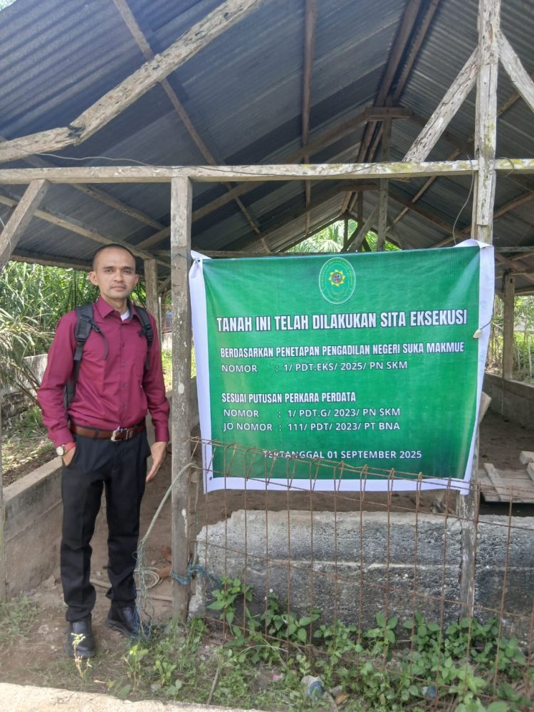 Ia menjelaskan, perkara ini berawal dari gugatan perdata yang dimenangkan oleh pihaknya M. Ali Hasyimi sebagai Penggugat di Pengadilan Negeri Suka Makmue dengan nomor perkara 1/Pdt.G/2023/PN SKM tertanggal 15 September 2023. Putusan tersebut kemudian diperkuat oleh Pengadilan Tinggi Banda Aceh melalui putusan Nomor 111/PDT/2023/PT BNA tertanggal 5 Desember 2023. Setelah putusan tersebut berkekuatan hukum tetap (inkracht), pihaknya mengajukan permohonan eksekusi kepada PN Suka Makmue.