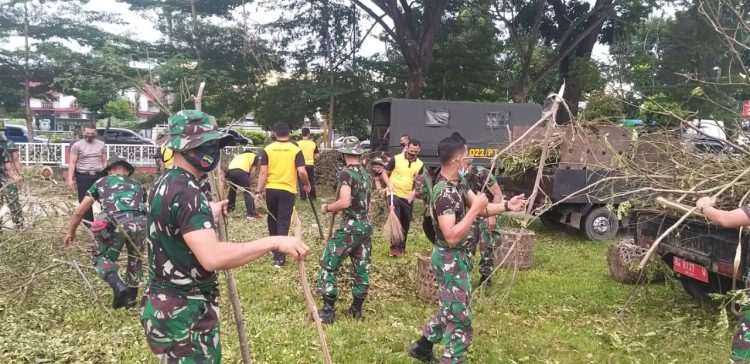 Kapolres Pematangsiantar AKBP Boy Sutan Binanga Siregar S.i.K, yang di wakili Kabag Ops Kompol Lamin SPd bersama dengan Kasrem 022/PT Letkol Inf Erli Priyanto, pimpin pelaksanaan kerja bhakti bersama yang dilaksanakan di tiga tempat antara lain Lapangan Adam Malik, Lapangan Merdeka dan Lapangan Korem kota Pematangsiantar, kegiatan tersebut turut di ikuti oleh, para Kabag, Kasat, Kapolsek Siantar Barat dan personil gabungan TNI-Polres Pematangsiantar, pada hari jum’at (09/07/2021) pukul 08.00 wib.