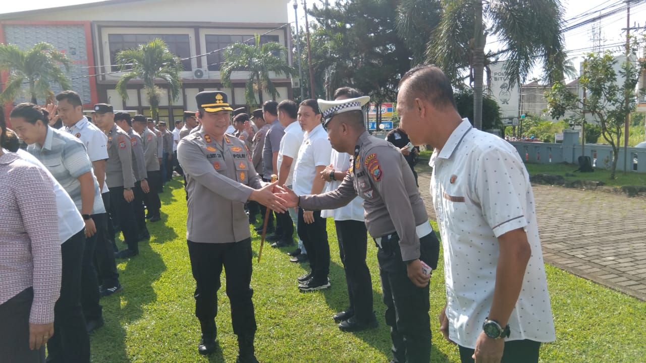 Kapolres Bitung AKBP ALBERT ZAI.,SIK.,MH, memberikan apresiasi kepada personel Polres Bitung dan Polsek jajaran atas pelaksanaan tugas, khususnya pengamanan Hari Raya Idul Fitri 1446 H/2025.