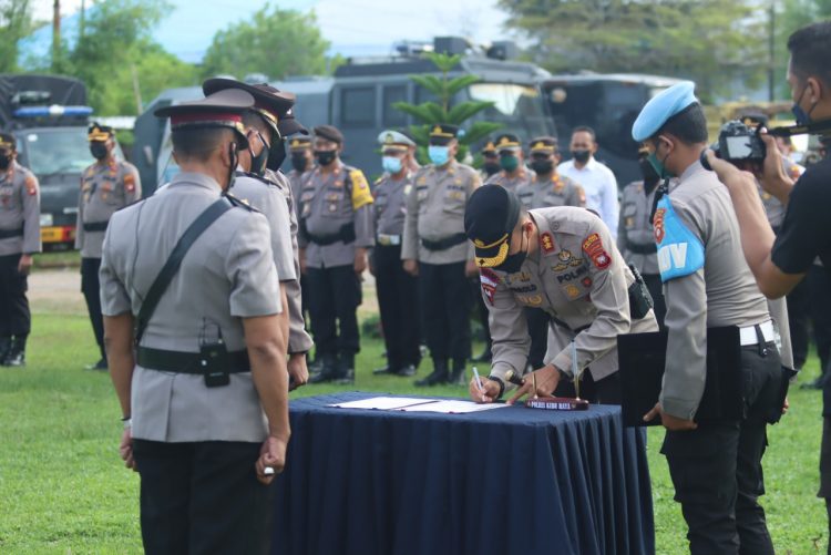 Kapolres Kubu Raya, AKBP Jerold HY Kumontoy, S.I.K pimpin upacara serah terima jabatan (Sertijab) Kepala Bagian Sumber Daya Manusia (Kabag SDM) dari pejabat lama Kompol Abdullah, SH kepada pejabat baru Kompol Bradanata Sembiring, SH., MH.