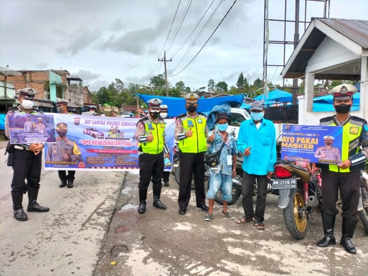 Kepala Satuan Lalulintas (Kasat Lantas) Polres Simalungun AKP Hendrik F. Aritonang, SIK, MH memimpin sosialiasi dan himbauan tentang tertib berlalu lintas serta penerapan protokol kesehatan (Prokes) dalam rangka Operasi Keselamatan Toba 2022 di wilayah hukum (Wilkum) Polres Simalungun, Selasa (1/3/2022) pagi sekira pukul 09.00 WIB.