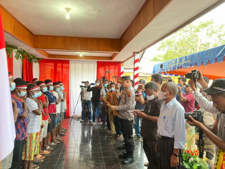 Kelompok KKB Kampung Ambaidiru Distrik Kosiwo melalui Polres Yapen menyerahkan diri untuk kembali kepangkuan Negara Kesatuan Republik Indonesia (NKRI).