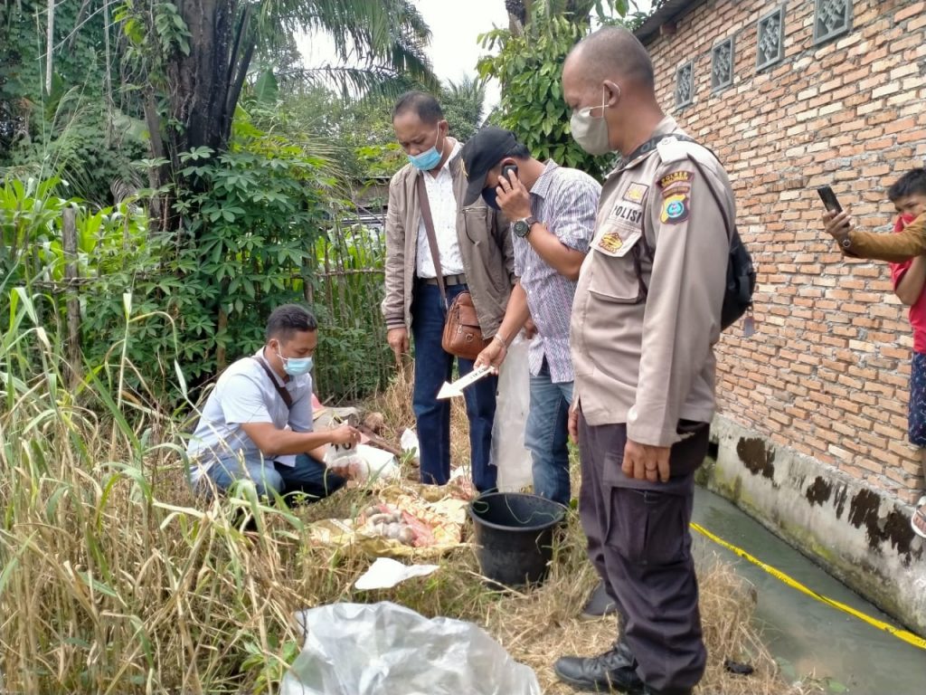 Kapolsekta Tanah Jawa Kompol Selamat melalui Kanit Reskrim Iptu JW. Saragih cek langsung penemuan mayat bayi yang diperkirakan masih berumur 2 (dua) hari yang baru saja dilaporkan warga Kampung Melayu Kelurahan Pematang Tanah Jawa, Kecamatan Tanah Jawa, Kabupaten Simalungun. Kamis (05/08/2021).