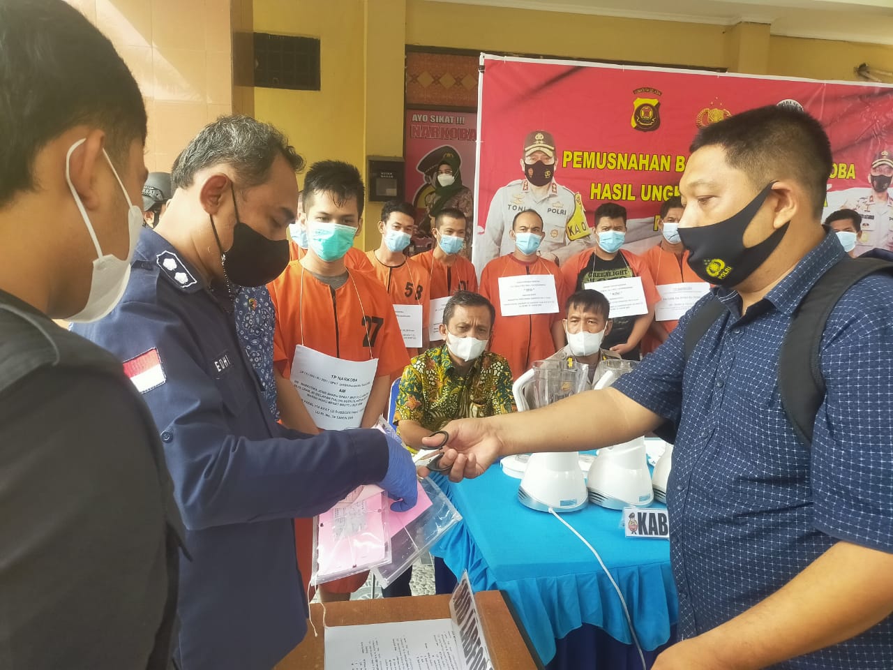 Kemudian, barang bukti narkoba jenis sabu-sabu dan pil ekstasi dicampur dengan deterjen lalu dibuang ke toilet. Sedangkan daun kering ganja dimusnahkan dengan cara dibakar di dalam drum.