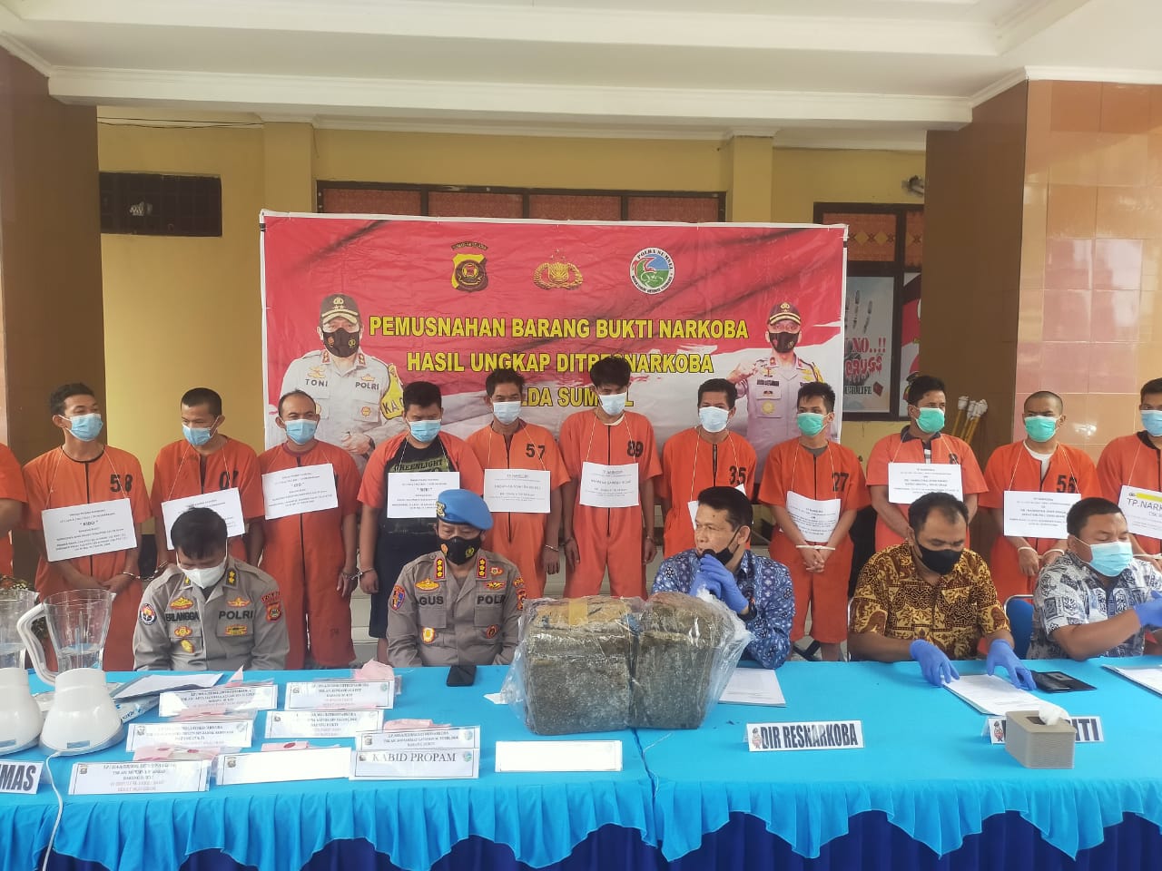 Barang bukti yang dimusnahkan tersebut diamankan dari 13 tersangka. Yakni Narkoba jenis sabu-sabu sebanyak 892,12 gram, daun ganja kering seberat 14,065 gram dan 80 butir pil ekstasi.