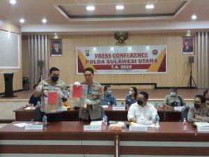 Polda Sulut menggelar press conference terkait perkembangan penanganan kasus membawa, memiliki, menyimpan dan menguasai senjata tajam tanpa izin dan pengancaman serta melawan petugas kepolisian saat melaksanakan tugas sehingga dilakukan tindakan tegas dan terukur, yang terjadi di wilayah Kecamatan Bunaken, Kota Manado.