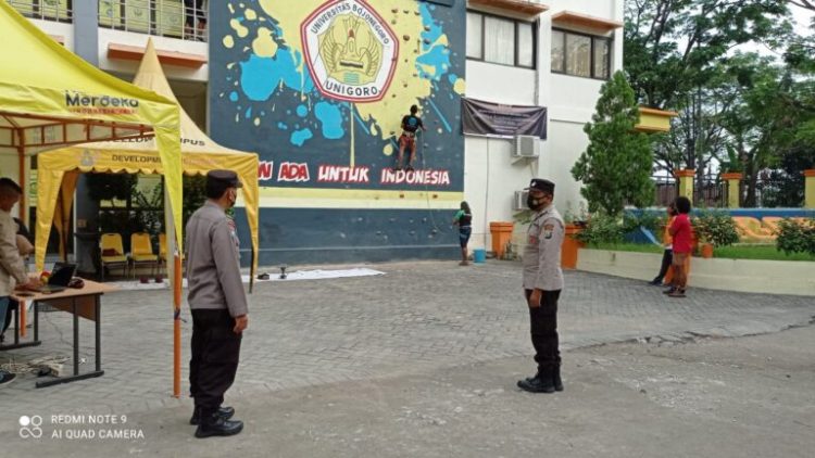 Panit Binmas polsek Bojonegoro Kota Aiptu Eli Agustna bersama tiga anggota melaksanakan pengamanan lomba Argopala climbing composition antar pelajar se-Jatim dan umum di Universitas Bojonegoro jl Lettu Suyatno.Kamis 14/7/22