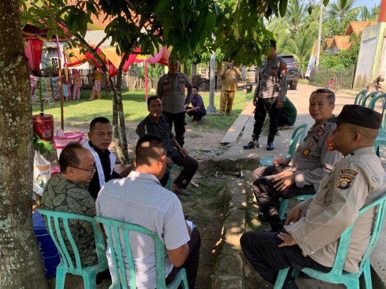 Polsek Muara Kuang melakukan pengamanan kegiatan kampanye dialogis dan pertemuan terbatas oleh Tim Kampanye Pasangan Calon Bupati-Wakil Bupati Ogan Ilir Nomor Urut 1, Panca Ardani, di Lapangan Desa Lubuk Tunggal, Kecamatan Rambang Kuang, Kabupaten Ogan Ilir, Selasa (22/10/2024).