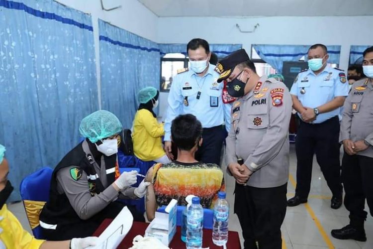 Kapolda Sumut meninjau pelaksanaan Vaksinasi terhadap Warga Binaan Lapas Kelas I Tanjung Gusta Medan dan Rutan Kelas I Medan. Senin (23/08/21).